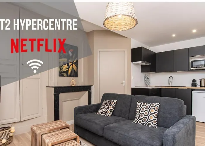 El alojamiento no solo ofrece servicio de tetera/cafetera, sino también una cocina completa con un horno de microondas, cafetera/tetera y una nevera. La parada de autobús más cercana, Jasmin, está situada a una distancia media de Jungle - T2 Centre Historique Apartamento.